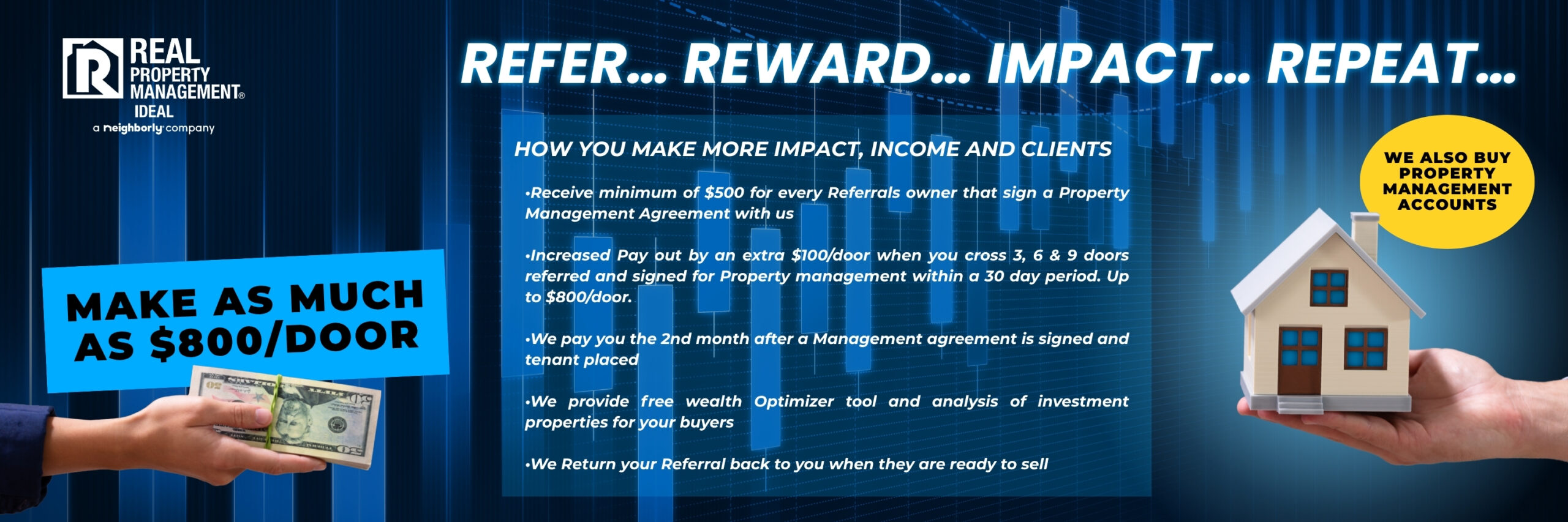 At Real Property Management Ideal, we help Realtors extend their client value beyond the sale. When you refer owners or investors needing property management, we take care of everything—while protecting your relationship and rewarding you for the trust.